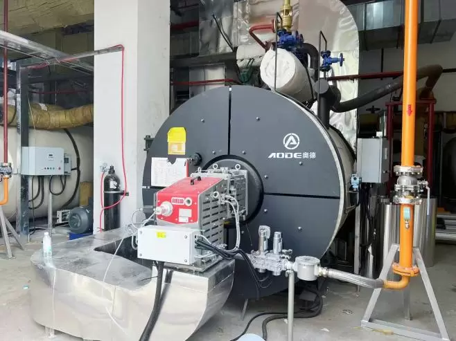 AODE has configured a new system design of 2.5 million kcal gas thermal oil boiler linked to waste heat boiler. Through the design of system optimization and automatic control, the thermal oil furnace has strong adaptability and full automatic operation, and at the same time, it can realize self-adjustability under the condition of highest utilization of waste heat, so that it can save fuel more.